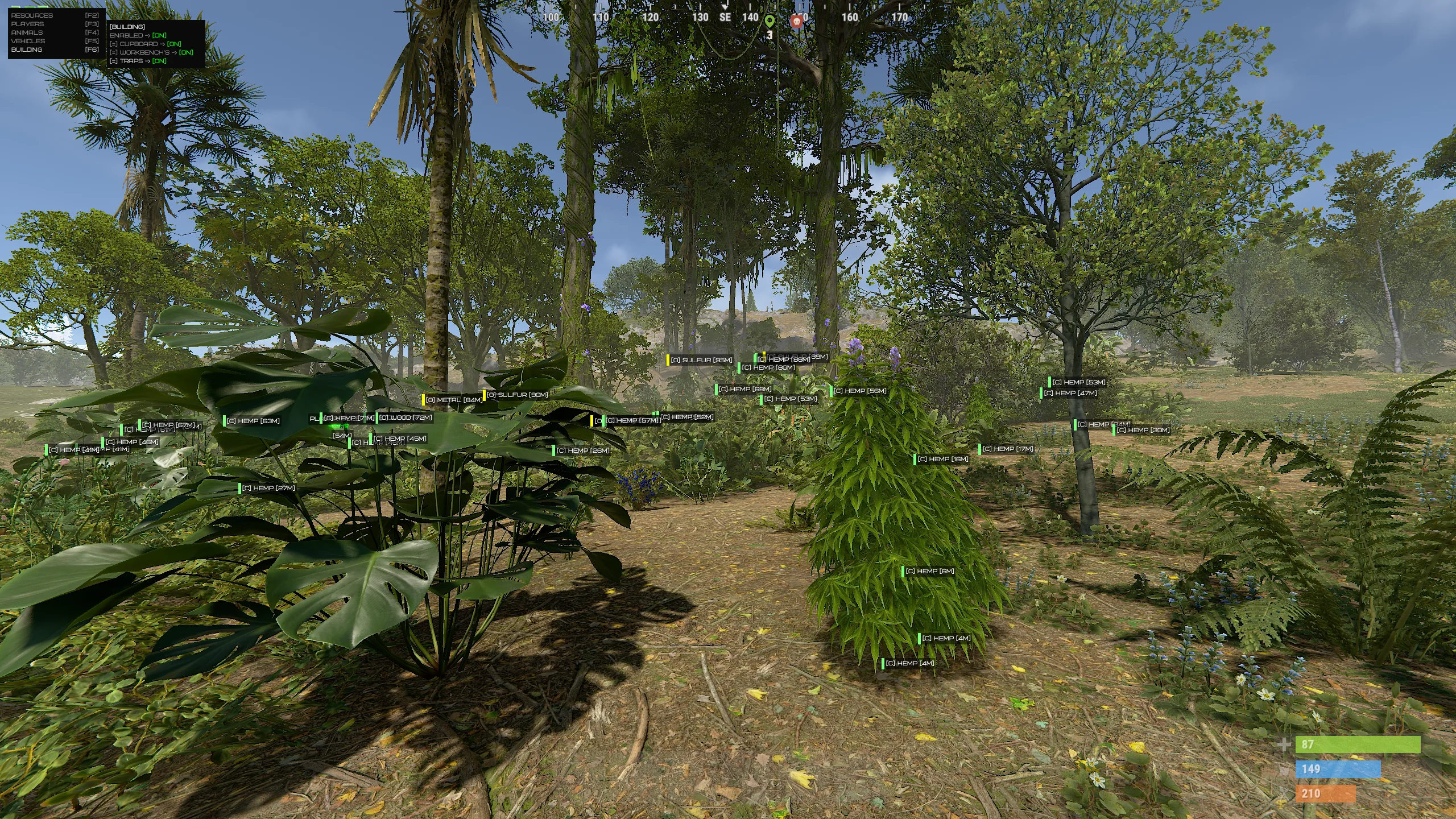 فينكس رست ESP يوفر رؤية واسعة لما يحدث في عالم رست. يتم عرض اللاعبين، والشخصيات غير القابلة للعب (NPC)، والحيوانات، والمركبات، وصناديق الغنائم، والموارد القابلة للحصاد، والأشياء البيئية الرئيسية. هذا يسمح بتخطيط الطرق مقدمًا، وتجنب المواجهات غير المرغوبة، وتحسين الزراعة.